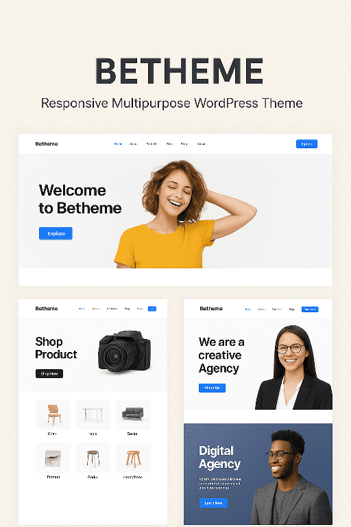 Betheme is a powerful multipurpose WordPress theme with over 600 pre-built websites, a drag-and-drop builder, and flexible customization options. Perfect for business, eCommerce, portfolio, and personal websites.